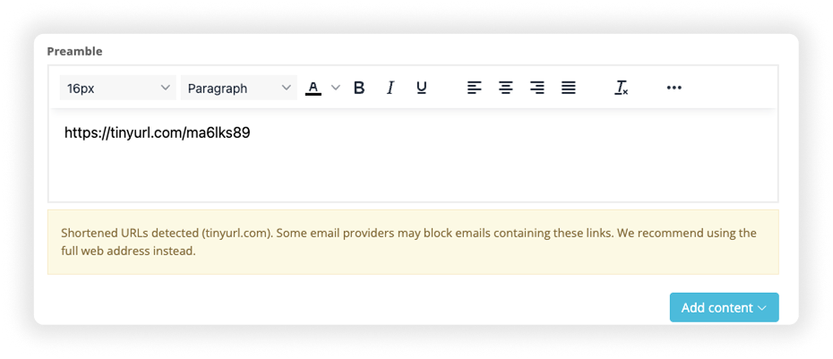 We’ve improved how the platform handles shortened URLs to reduce the risk of emails being blocked.